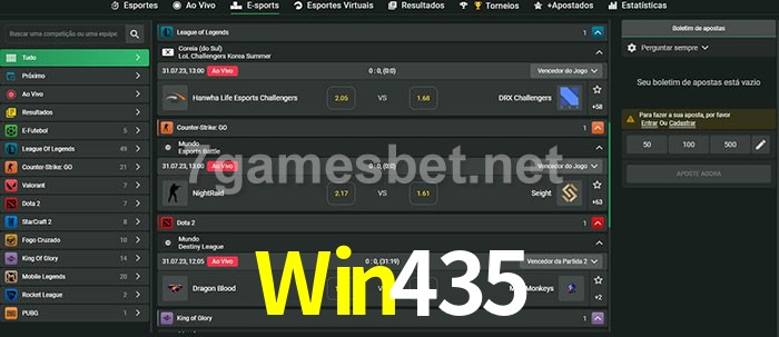 O Win435 oferece uma grande seleção de opções de apostas em e-sports com probabilidades competitivas